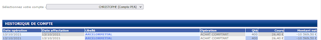 - 13/10/2021 : 400 titres - Montant net : 10 569.50 €