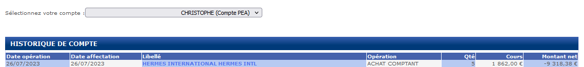 - 19/07/2023 : 12 titres - Montant net : 22 640.36 €
